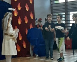 Klasa 2a zaprosiła swoich najbliższych na występ z okazji Dnia Babci i Dziadka. W tym roku trochę nietypowo dziadkowie mieli okazję zobaczyć jasełka z lekkim przymrużeniem oka w wykonaniu swoich wnuków. Oczywiście zgodnie ze zwyczajem po uroczystości dzieci wręczyły gościom własnoręcznie wykonane prezenty.