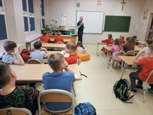 W naszej szkole odbyło się spotkanie ze strażnikiem miejskim, podczas którego rozmawialiśmy z uczniami klas 1-3 o zasadach bezpieczeństwa podczas ferii zimowych. Uczniowie dowiedzieli się, jak bezpiecznie spędzać czas na świeżym powietrzu, bawić się na śniegu i lodzie, a także jak zachować ostrożność w kontaktach z nieznajomymi. Nie zabrakło również ważnych informacji dotyczących bezpieczeństwa w domu oraz przypomnienia numerów alarmowych. Spotkanie miało formę rozmowy, a dzieci chętnie zadawały pytania i dzieliły się swoimi doświadczeniami.