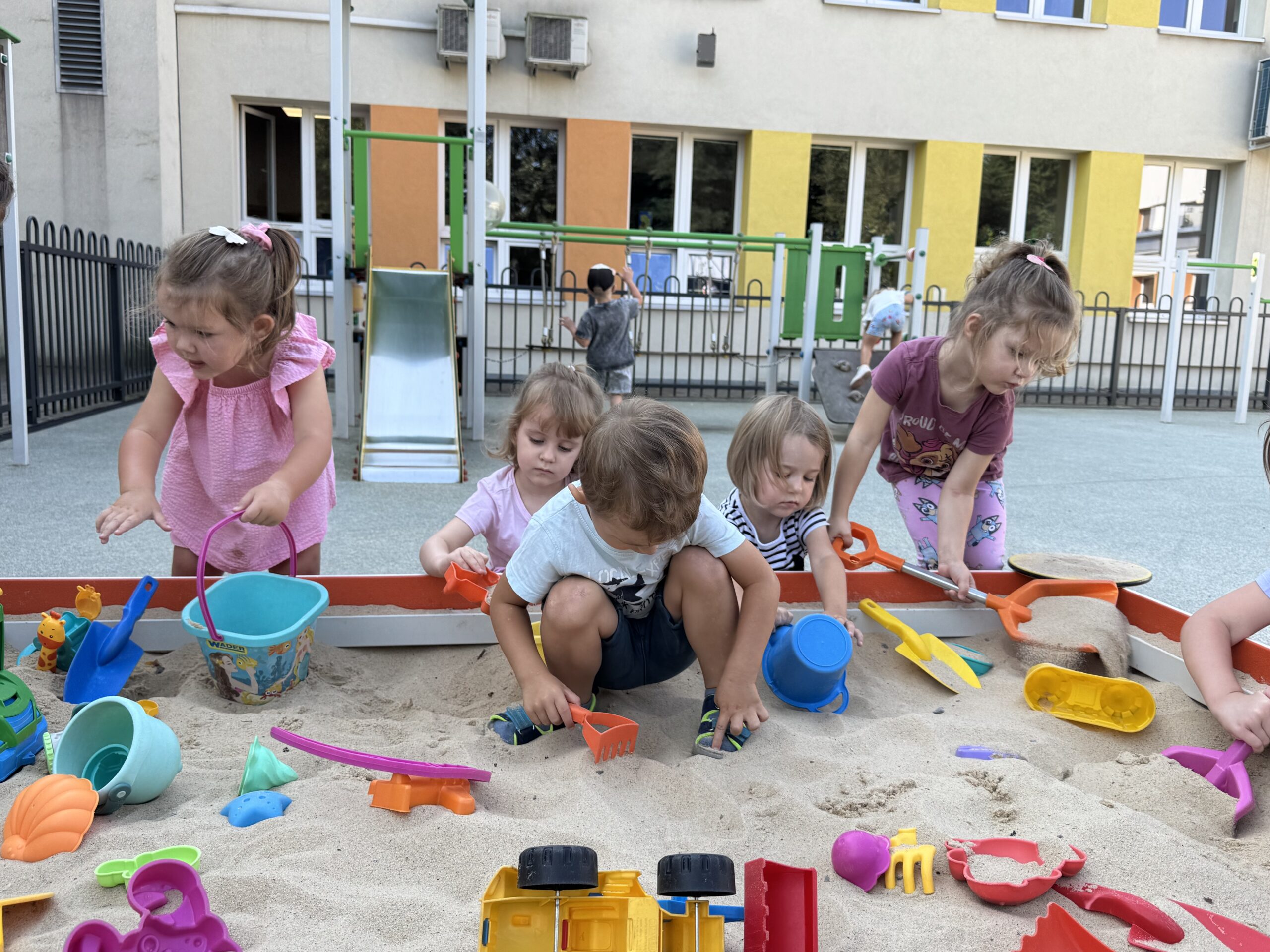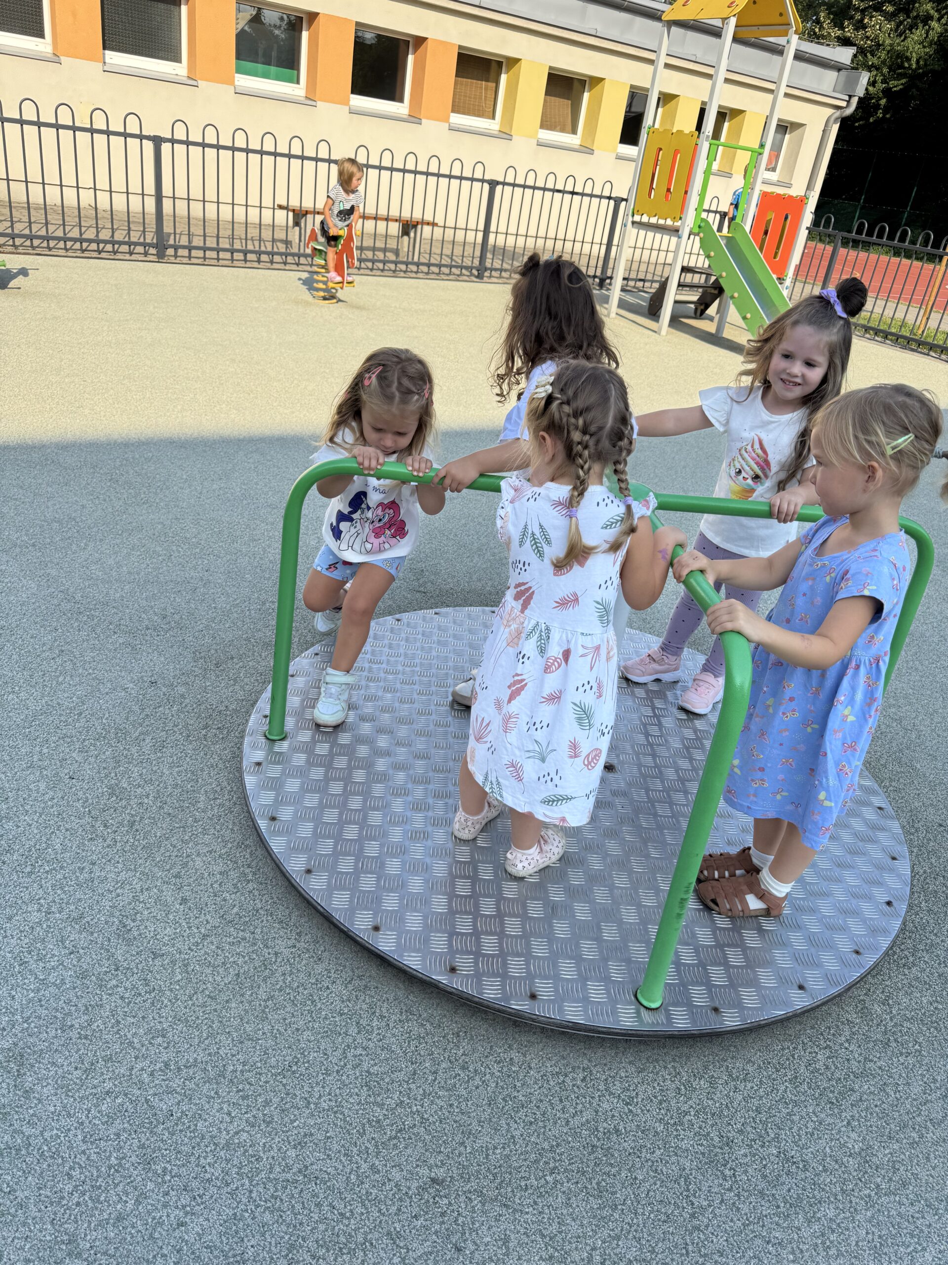 „Biedronki” na placu zabaw 8 września 2025 / Nasze nowe przedszkolaki z grupy „Biedroneki„ odbyły swoje pierwsze zabawy na placu zabaw. Dzieci z ogromną radością korzystały z zjeżdżalni, piaskownicy i innych sprzętów, a wspólne aktywności na świeżym powietrzu pozwoliły na lepszą integracje.