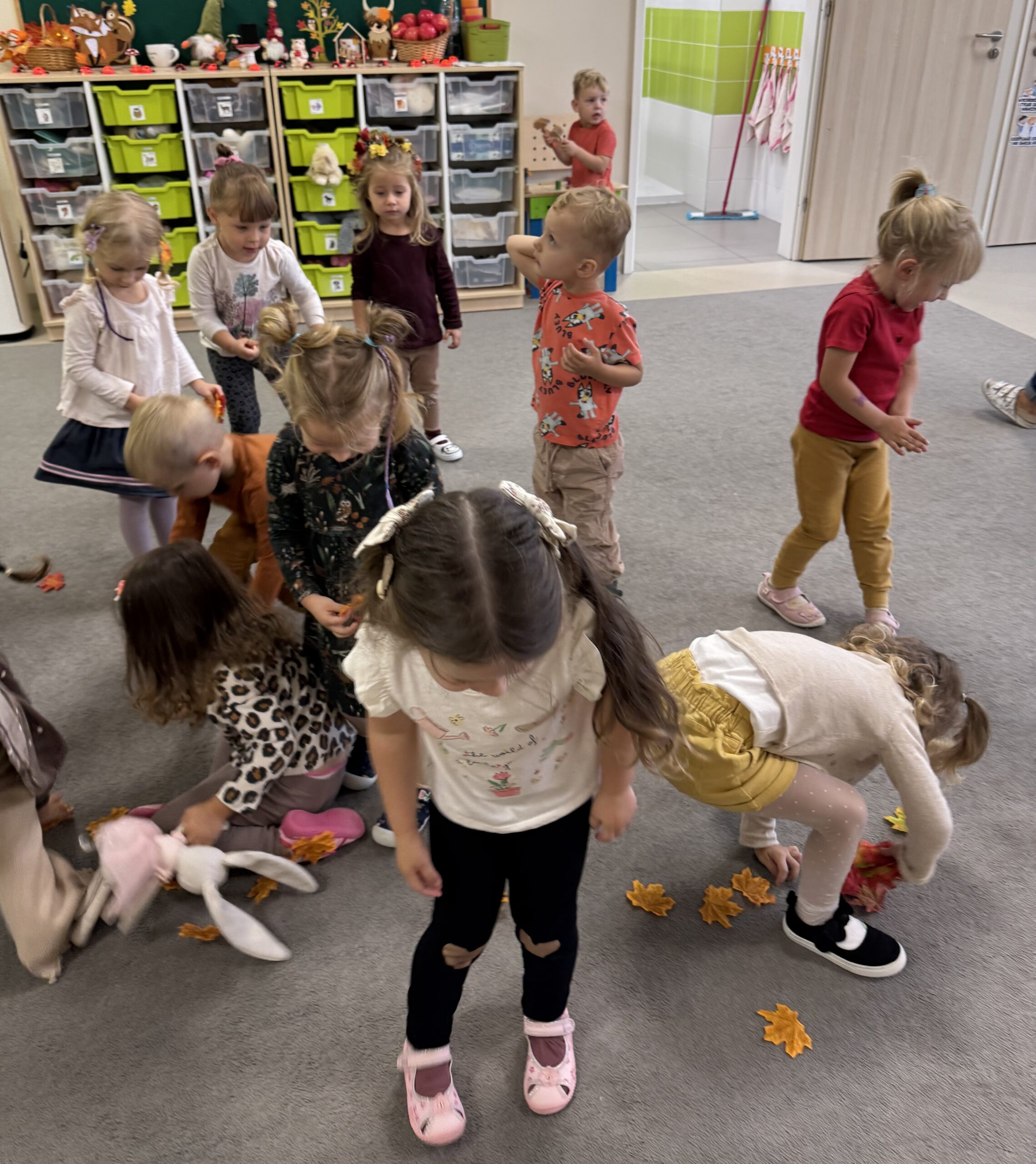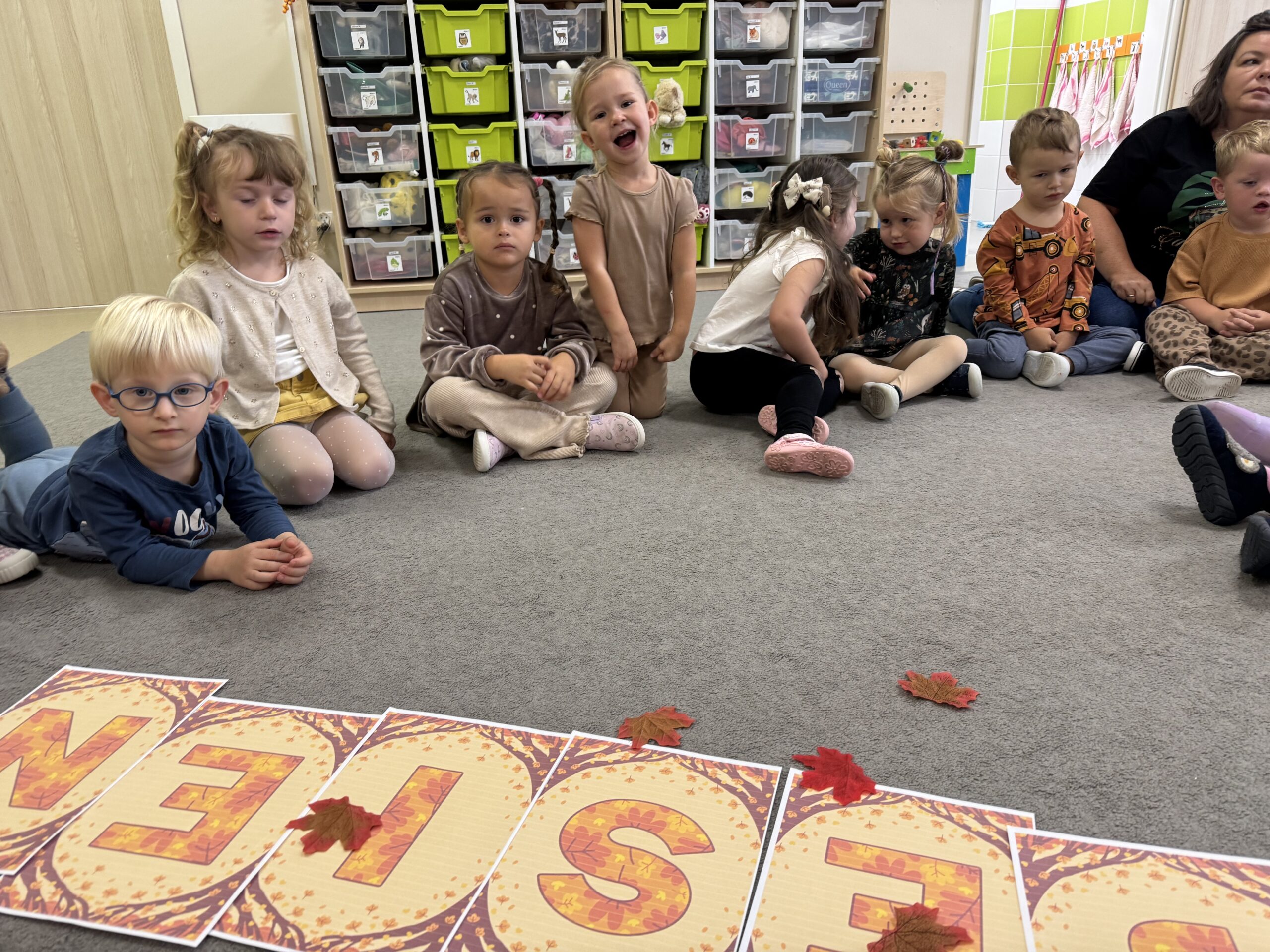 Dnia 23.09.2025r. Biedronki świętowały pierwszy dzień jesieni. Była to doskonała okazja, aby dzieci mogły bliżej poznać tę piękną porę roku. Przedszkolaki zapoznały się z oznakami jesieni oraz jej darami – kolorowymi liśćmi, kasztanami i żołędziami. Wspólna zabawa w rytm muzyki wśród jesiennych liści dostarczyła dzieciom wiele radości, a dodatkową atrakcją były zajęcia z magicznym dywanem, które pozwoliły maluchom aktywnie i twórczo spędzić ten wyjątkowy dzień.