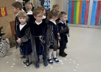 Dnia 12.02.2024, pełni wdzięczności za bezgraniczną miłość babć i dziadów, grupa „Sówki” wystąpiła dla swoich najbliższych. Zaproszeni goście mieli okazje zobaczyć występ „Świąteczne Przygotowania” w wykonaniu wszystkich przedszkolaków z naszego przedszkola oraz spektaklu „Urząd od rozwiazywania problemów babci i dziadka” w wykonaniu dzieci z grupy „Sówki”. Po części artystycznej cudowni goście zostali obdarowani prezentami, które własnoręcznie przygotowały ich wnuczęta, był również czas by wspólnie napić się kawy i zjeść pyszne ciasto.