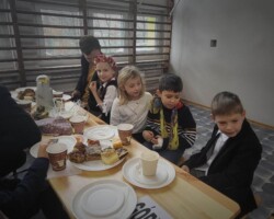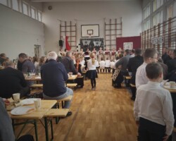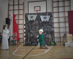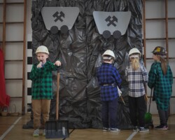 W dniu 5 grudnia do naszej placówki zaprosiliśmy szczególnych gości. Chcieliśmy uczcić ciężką i niebezpieczną pracę górników, dlatego w szkolnych progach powitaliśmy tatusiów i dziadków naszych uczniów, którzy podjęli lub podejmowali w swoim życiu trud „wydobywania skarbów spod ziemi”. Uroczysta akademia i biesiada została uświetniona obecnością przedstawicieli Urzędu Miasta Jastrzębie-Zdrój, MZOSiP-u, Zarzadu Osiedla Jastrzębie Górne i Dolne, OSP oraz parafii św. Katarzyny i Opatrzności Bożej. Uczniowie szkoły i przedszkola przedstawili bogaty program artystyczny i złozyli życzenia wszystkim górnikom. Na koniec Zespół „Jastrzymbioki” zaprezentował kilka utworów regionalnych, zapraszając wszystkich do wspólnego śpiewu.
