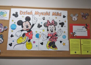 Hucznie obchodziliśmy w świetlicy Dzień Myszki Miki w ramach realizacji projektu Kreatywne Dni Nietypowe. Na początek obejrzeliśmy krótki filmik :„ Myszka Miki – historia ewolucji postaci”. Następnie wspólnie wykonaliśmy plakat Miki i Mini – kolorowanka XXL. Chłopcy podjęli się wyzwania i stworzyli pomnik Myszki Miki z klocków. Z filmiku instruktażowego dowiedzieliśmy się jak narysować Myszkę Miki. Na zakończenie zajęć obejrzeliśmy bajkę: „Pan Myszka Miki wybiera się w podróż”.
