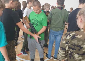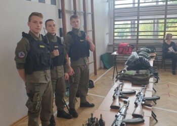 W dniu 13.10.2023 r. obchodziliśmy w naszej szkole Dzień Patrona Szkoły – Wojska Polskiego. Z tej też okazji zaprosiliśmy 2 klasę Oddziału Przygotowania Wojskowego z III LO im. Stanisława Wyspiańskiego, która przybliżyła nam tajniki rzemiosła wojskowego. Uczniowie zaprezentowali musztrę wojskową, elementy samoobrony, a także sprzęt wojskowy, jakiego używają do ćwiczeń (atrapy oddające rzeczywistą wagę i wielkość broni). Bardzo dziękujemy wszystkim uczniom OPW i ich wychowawcy, p. chorążemu rezerwy Krzysztofowi Zmorzyńskiemu, za poświęcony nam czas i wiele ciekawych informacji o wojsku.