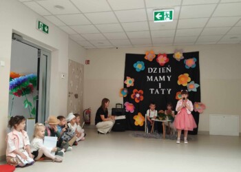 „Mama i tata to wielkie słowa które są synonimem miłości, dobra i ciepła rodzinnego. Dlatego też pomagamy dzieciom wyrazić ich miłość do rodziców organizując w tym roku w naszym przedszkolu „Dzień Mamy i Taty” z tej właśnie okazji dnia 10 maja 2024 roku w gr.”Żabki” odbyła się uroczysta akademia, dzieci w pięknych strojach prezentowały bogaty program artystyczny. Była inscenizacja dzieci , wiersze piosenki, tańce, instrumentacja oraz życzenia dla kochanych rodziców. Atmosfera uroczystości była podniosła i niezwykle rodzinna.
