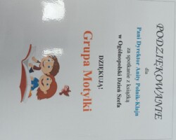 W poniedziałek, 17 października, dzieci z grupy „Motylków” świętowały Dzień Szefa. Z tej okazji, w ramach innowacji „Dużym krokiem w świat książek”, zaprosiły panią Dyrektor do wspólnego czytania. Nasz zaproszony gość przeczytał wspaniałą baśń „Dziewczynka z zapałkami”. Dziękujemy pani Dyrektor za odwiedziny i zapraszamy ponownie.