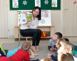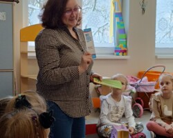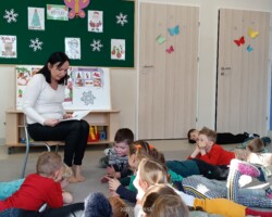 Zaś we wtorek, 20 grudnia, grupę „Motylków” odwiedziła mama Łucji, pani Ania, która w ramach innowacji „Dużym krokiem w świat książek”, przeczytała dzieciom świąteczną opowieść o Mikołaju. Z racji wykonywanego zawodu, pani Ania, która pracuje w Bibliotece, opowiedziała o swojej pracy oraz porozmawiała z dziećmi o tym, jak należy dbać o książki.