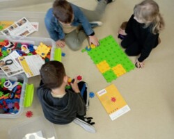 natomiast młodsi uczniowie chętnie bawią się klockami konstrukcyjnymi KORBO.