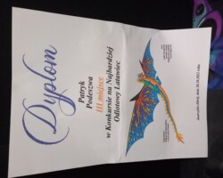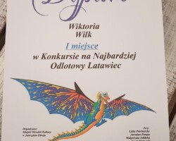 Z przyjemnością gratulujemy laureatom Konkursu na Najbardziej Odlotowy Latawiec, organizowanego przez Miejski Ośrodek Kultury i Klub „Kaktus”. Spośród 37 prac zostało nagrodzonych 12, w tym I miejsce zdobyła Wiktoria Wilk z kl.8a, a III miejsce Patryk Podeszwa z kl. 2a. Wyrażamy uznanie dla ich kreatywności i talentów.