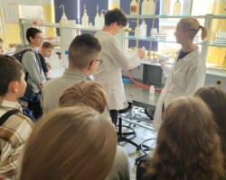 W trakcie pobytu uczniowie naszej szkoły brali udział w pokazach prezentujących kierunki dostępne w innych placówkach edukacyjnych w naszym mieście. Podczas tego spotkania ósmoklasiści na własne oczy mogli w sali biologicznej zobaczyć przez mikroskop prawdziwe organy, na których pracują licealiści. W sali chemicznej mieli okazję podziwiać interesujące i bardzo efektowne eksperymenty, które wykonali uczniowie 4 klasy liceum. Podczas spotkania z nauczycielką matematyki nasi koledzy wzięli udział w grze, w której mogli sprawdzić swoje umiejętności w rozwiązywaniu rebusów. Odbyła się również prezentacja kierunków mundurowych Zespołu Szkół nr 3 im. Stanisława Wyspiańskiego. Po zapoznaniu się ze wszystkimi szkołami i kierunkami jakie oferują, uczniowie naszej szkoły opuścili „Miasteczko Zawodów”.