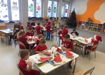 Dnia 6.12.2023 do naszego przedszkola zawitał Mikołaj. Dzieci z grupy „Sówki” powitały niezwykłego gościa piosenką. Każda „sówka” otrzymała od Mikołaja prezent, który wywołał uśmiech na twarzach. Po spotkaniu wykonaliśmy kreatywny portret naszego gościa. Dziękujemy Mikołajowi, że w tym szczególnym dniu znalazł dla nas czas i już nie możemy się doczekać ponownego spotkania.