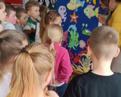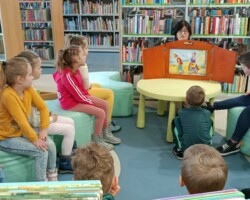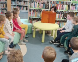 12 kwietnia przedszkolaki z grupy „Motylków” wraz z wychowawcą p. Teresą Wroną wybrały się na zaproszenie do Miejskiej Biblioteki Publicznej w Jastrzębiu-Zdroju. Celem wycieczki było rozwijanie zainteresowań czytelniczych, kształtowanie umiejętności współdziałania oraz utrwalanie nawyków kulturalnego zachowania się w miejscach publicznych. Podczas zajęć pani bibliotekarka opowiedziała o swojej pracy, pokazała różne książki oraz zwróciła uwagę na zasady korzystania z książek. W trakcie pobytu w bibliotece pani bibliotekarka zaprosiła wszystkie dzieci do zabaw ruchowych oraz przedstawiła „Motylkom” opowieść o Rybaku i Złotej Rybce za pośrednictwem teatrzyku Kamishibai. Ta forma czytania wywodząca się z Japonii bardzo się dzieciom spodobała. Na koniec zajęć dzieci stworzyły swój kolorowy, morski świat. Spotkanie odbywało się w miłej, pełnej uśmiechów i wrażeń atmosferze. Dziękujemy za poświęcony czas!