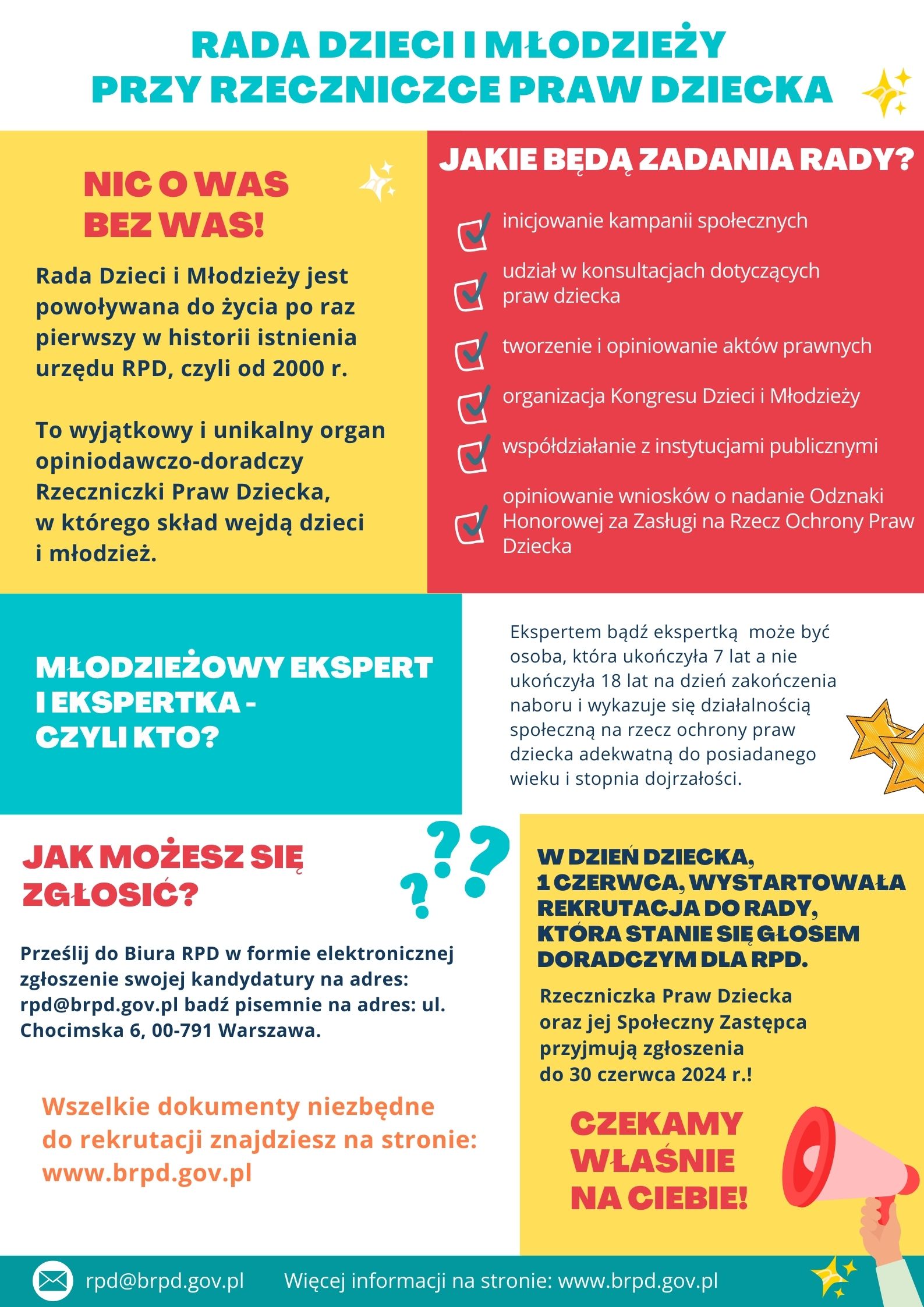 Nabór do Rady Dzieci i Młodzieży przy Rzeczniczce Praw Dziecka 27 czerwca 2024 / Zapraszamy do zapoznania się z informacjami umieszczonymi w załączniku i plakacie. Nabór Plakat