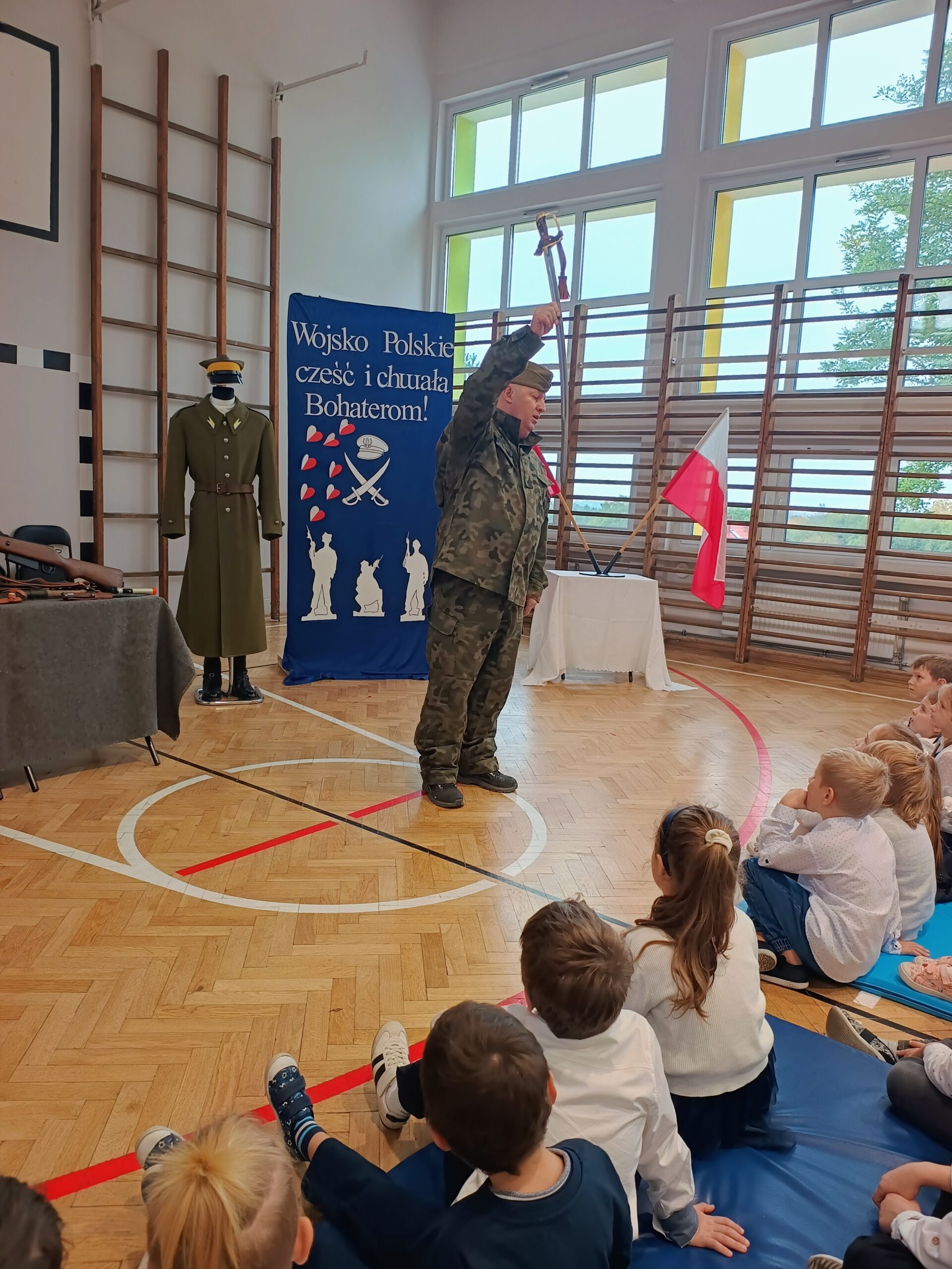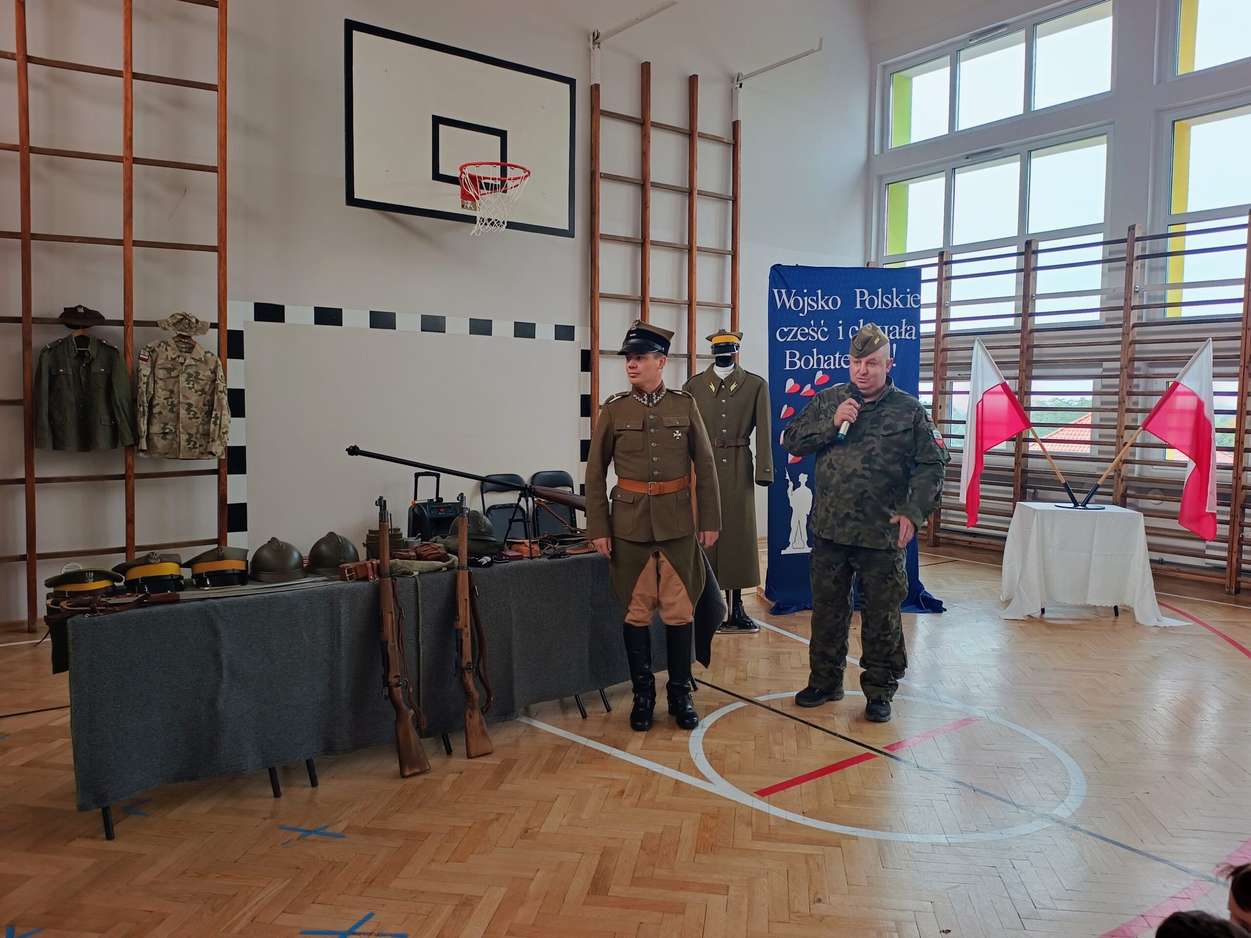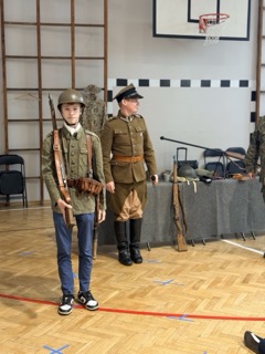 Tego dnia mieliśmy także przyjemność gościć przedstawicieli Stowarzyszenia Rekonstrukcji Historycznej Jastrzębski Wrzesień 1939. Panowie zaprezentowali nam broń wykorzystywaną przez Wojsko Polskie w różnych okresach historii. Uczniowie mieli okazję zobaczyć z bliska elementy wyposażenia żołnierzy, poznać ich zastosowanie, a także posłuchać ciekawostek. Była to niezwykle ciekawa i wartościowa lekcja historii, która na długo pozostanie w naszej pamięci.