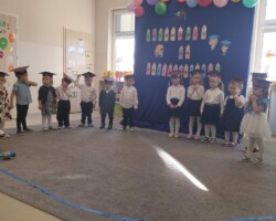 Po części artystycznej dzieci i rodzice złożyli uroczyste ślubowanie, a pani wicedyrektor za pomocą „zaczarowanego ołówka” dokonała pasowania. Był to bardzo ważny i radosny dzień w grupie.
