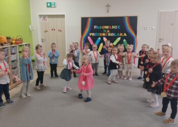Pasowanie na Przedszkolaka to pierwsza wyjątkowa uroczystość w życiu każdego dziecka, które rozpoczyna swoją przygodę z przedszkolem. W październiku „Biedronki” po raz pierwszy zaprezentowały swoje umiejętności wokalne, recytatorskie i taneczne. Następnie złożyły uroczyste ślubowanie, a Pani Dyrektor dokonała uroczystego pasowania.