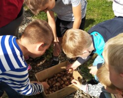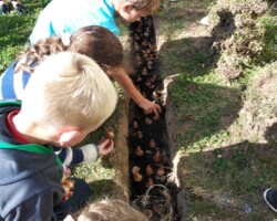 Świetliczaki w ramach kolejnej edycji ogólnopolskiej akcji na rzecz Hospicjum pt. „Pola Nadziei”, posadziły 100 cebulek żonkili przed budynkiem naszej szkoły. Jest to już drugie takie pole. Żonkil –