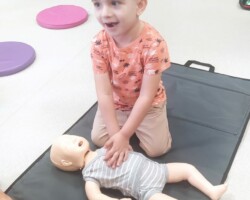 Dnia 13.12.2022 do przedszkolaków przybył niezwykły gość, który przy wspólnej zabawie uczył dzieci udzielania pierwszej pomocy oraz bezpiecznej ewakuacji w razie pożaru. Pan Bartłomiej Sępiak, bo o nim mowa, jest zawodowym ratownikiem medycznym oraz strażakiem. Oprócz praktycznych zajęć, przybliżył przedszkolakom pracę strażaka i ratownika medycznego. Dzieci mogły sprawdzić wytrzymałość ubrania ochronnego oraz zobaczyć jak dobrze prezentują się w hełmie strażackim.