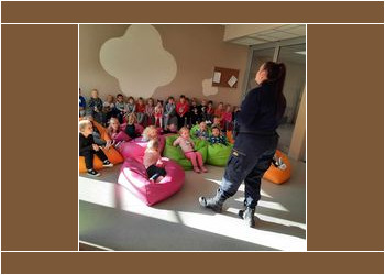 W trosce o bezpieczeństwo naszych przedszkolaków, dnia 18 października, odwiedziła przedszkole funkcjonariuszka Straży Miejskiej i przeprowadziła prelekcję dla młodszych grup pt.” Jak zachowywać się w lesie i jak postępować z dzikimi zwierzętami „. Dla grup starszych przeprowadziła prelekcję na temat obowiązków wypływających z posiadania psa oraz jak zachować się, gdy psy nas atakują. Na zakończenie każdy przedszkolak otrzymał odblask Smokusia, aby bezpiecznie poruszać się po okolicy.