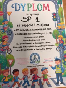 Naszą szkołę reprezentowała drużyna w składzie Marta z klasy 3b, Piotrek z klasy 2a oraz Marysia z klasy 1b. Nasi uczniowie pokazali, że bezpieczeństwo na drodze nie ma przed nimi tajemnic i tym samym zajęli I miejsce w kategorii klas młodszych I-III oraz dodatkowo Marta zajęła I miejsce w kategorii klas 3 i Piotrek I miejsce w kategorii klas 2.