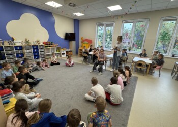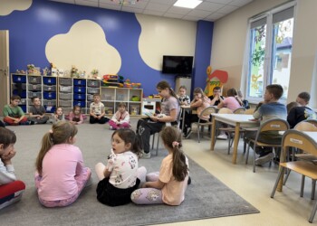 Z okazji Światowego Dnia Książki dzieci z grupy „Motylki” wraz z uczniami klasy 2b przygotowało wspólne spotkanie, które miało na celu promowanie czytelnictwa i budowanie więzi między młodszymi i starszymi dziećmi. Podczas wizyty uczennica Marta A. przeczytała przedszkolakom z grupy „Motylki” książkę z serii „Kicia Kocia” pt. „Wiosna”. Dzieci z ogromnym zaciekawieniem słuchały przygód Kici Koci, wprowadzając się w wiosenny nastrój oraz rozmawiając o zmianach, jakie niesie ta piękna pora roku. Po wspólnym czytaniu przyszedł czas na wesołą zabawę! Uczniowie klasy 2b wraz z przedszkolakami bawili się razem, dzieląc się radością i wzajemną życzliwością. Było mnóstwo śmiechu, pozytywnej energii i wzajemnej pomocy. Nasze wspólne spotkanie pokazało, jak ważne są takie chwile – dzieci miały okazję do rozwijania kompetencji społecznych, wzajemnego szacunku oraz odkrywania radości płynącej z czytania.