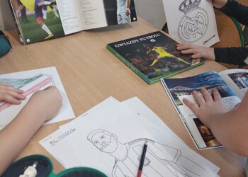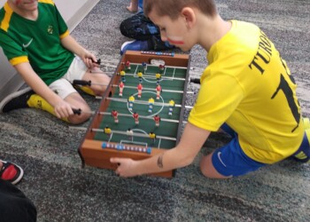 To zadanie realizowane w ramach projektu Kreatywne Dni Nietypowe było długo wyczekiwane przez chłopców. Świętowaliśmy przez kilka dni. Odbył się turniej świetlicowy w „Piłkarzyki”. Chłopcy trenujący piłkę nożną opowiadali o swoich klubach i przeprowadzili trening piłkarski. Przygotowaliśmy wystawę kolorowanek herbów piłkarskich klubów krajowych i zagranicznych oraz najsłynniejszych piłkarzy. Graliśmy w dobble piłkarskie, piłkarskiego Piotruśia. Czytaliśmy ciekawostki o najlepszych piłkarzach. Dziewczynki wykonały „ machacze meczowe”. Oj, dużo się działo.