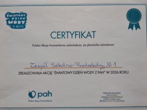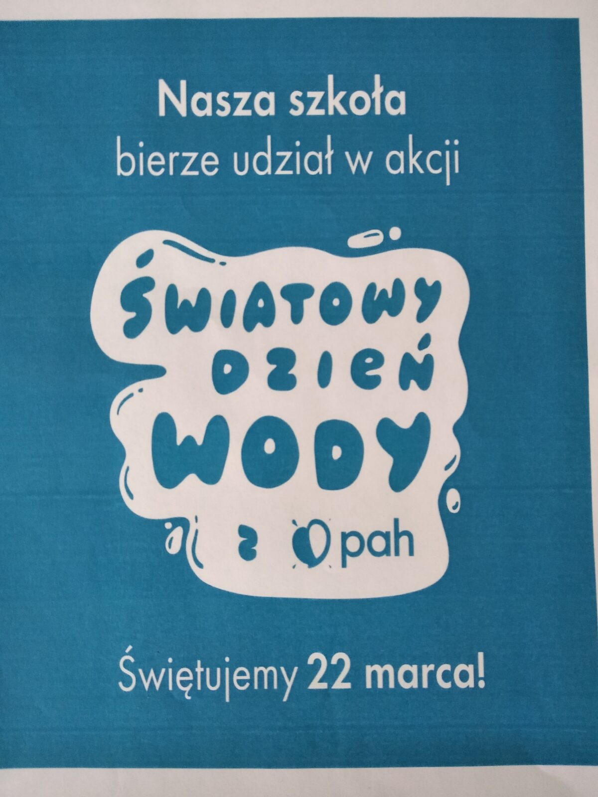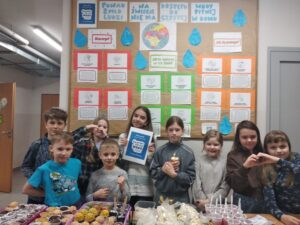 W tym roku nasza szkoła przystąpiła do obchodów Światowego Dnia Wody z Polską Akcją Humanitarną. Od 23 do 27 marca w trakcie zajęć świetlicowych i edukacji zdrowotnej uczniowie zdobywali wiedzę na temat wody, jej dostępności na świecie, przyczyn jej braku oraz sposobów pomagania. Dowiedzieli się również ile wody zużywamy wirtualnie i czym jest ślad wodny. Informacje uczniowie zdobywali poprzez aktywny udział w projekcjach filmów, rozwiązywaniu kart pracy, quizów, przeprowadzaniu eksperymentu, przygotowaniu gazetki tematycznej. W ramach akcji zorganizowaliśmy kiermasz słodkości, której dochód został przeznaczony na wsparcie działań związanych z zapewnieniem dostępu do czystej wody dla potrzebujących. Nawet takie małe działania mogą mieć wielkie znaczenie, bo przecież nie złoto, nie diamenty, nie drogie samochody a woda jest najcenniejszą rzeczą na świecie.
