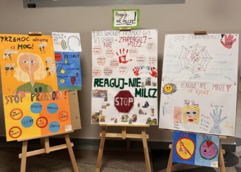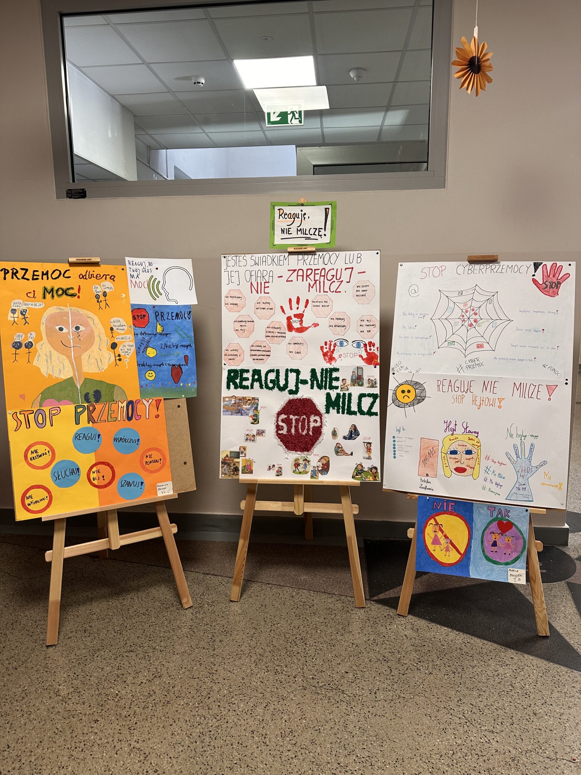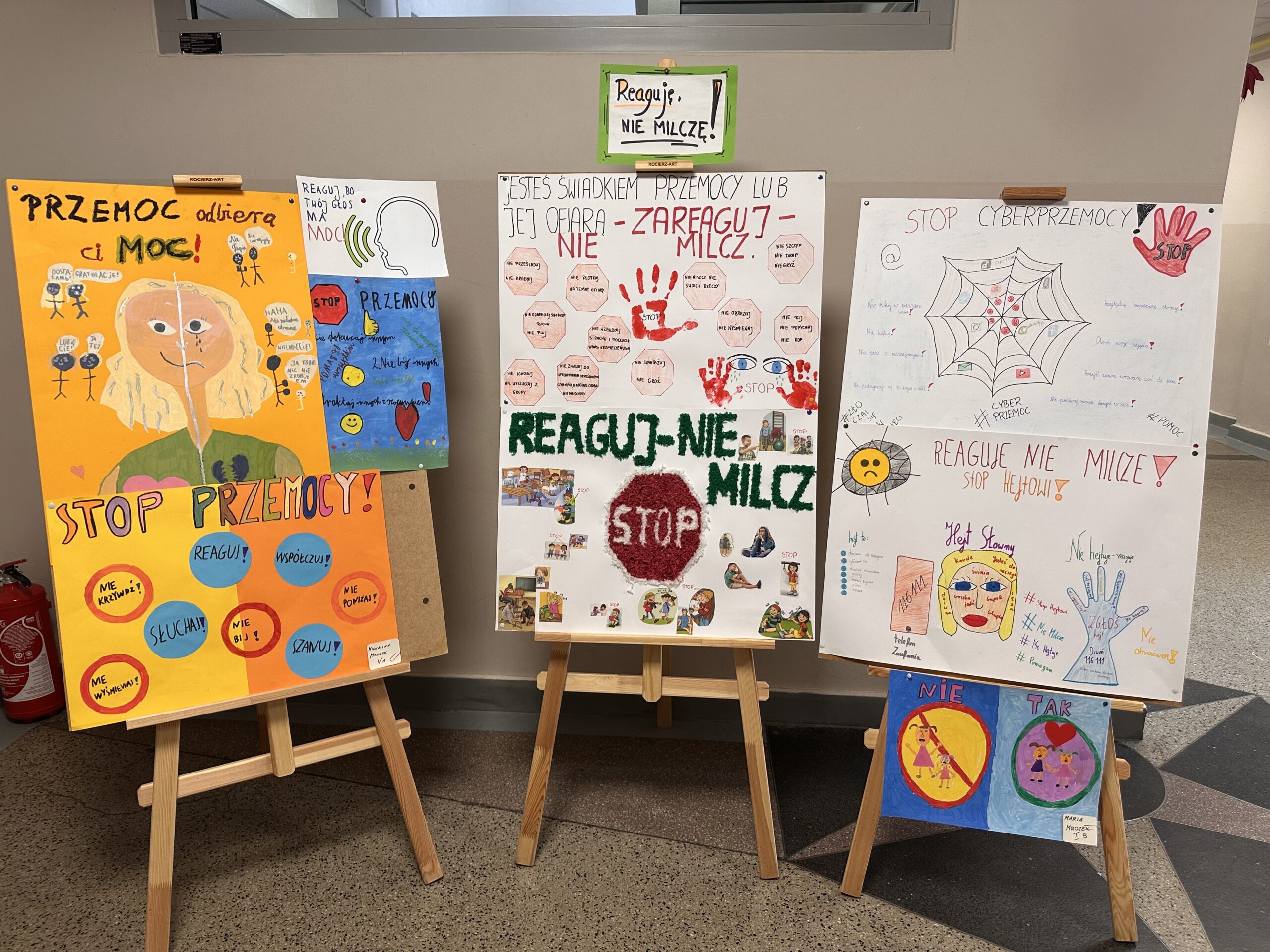 Rozwiązano Szkolny konkurs plastyczny „Reaguję, nie milczę”. Uczniowie wykonali kreatywne, niosące ważne przesłanie plakaty.