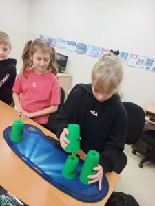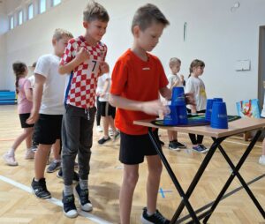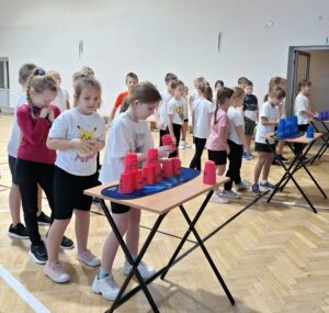 Sport stacking to zabawa polegająca na układaniu plastikowych kubków w figury, w jak najkrótszym czasie. W ostatnich latach traktowana jako sport, w którym rywalizują osoby z całego świata. W naszej szkole klasy 1-3 zmierzyły się z tym zadaniem a radości było co niemiara!