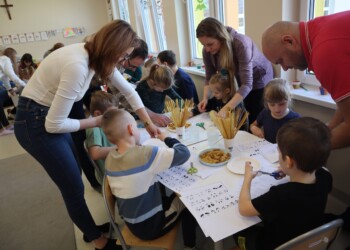 Dzieci z grupy „Sówki” odbyły podróż do Włoch, podczas zorganizowanego w grupie włoskiego tygodnia, przedszkolaki mogły poznać kulturę, język, sztukę i smaki Italii. Dzieci z grupy „Sówki” w czasie tygodnia Włoskiego, na dłużej zatrzymały się w Florencji zachwycając się sztuką renesansu. Na zakończenie tygodnia Włoskiego zaprosiliśmy do udziału w zajęciach otwartych rodziców, pod czas których zaprezentowaliśmy piosenkę „Fra’ Martino”, nauczyliśmy się tańca „Tarantela”, oraz wspólnie zachwycaliśmy się sztuką Renesansu, tworząc przy tym swoją własną „Mona Lise”. W czasie Włoskiego tygodnia została wykorzystana wiedza zdobyta przez nauczycieli, którzy aktywnie brali udział w Kursie „Discovering Renaissance Art in Florence” z projektu „Erasmus plus”.
