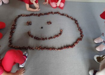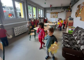 Dnia 6 października w grupie „Żabek” po raz pierwszy obchodziliśmy Światowy Dzień Uśmiechu. W tym dniu sala „Żabek” zamieniła się w magiczną, pełną szczęścia krainę. Wszyscy byli witani z uśmiechem na twarzy. Zabawy tego dnia miały każdego wprawić w dobry nastrój i wywołać dużo uśmiechu na twarzy. Był to idealny moment, aby uświadomić dzieciom znaczenie optymistycznego podejścia do życia.