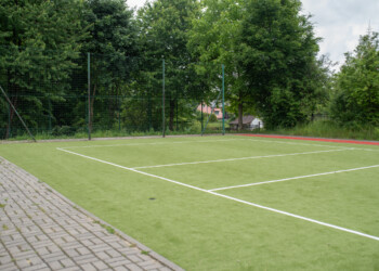 W ramach prac związanych z przebudową wykonana została m.in. rozbiórka starego boiska z trawiastą powierzchnią oraz zamiana na nawierzchnię bezpieczną-poliuretanową.