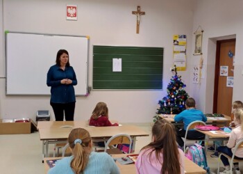 Do klasy 1 b w piątek 05 stycznia zawitała pani pedagog Iwona Kisiel. Jej wizyta miała na celu zapoznać uczniów z zawodem pedagoga oraz pani Iwona przeprowadziła krótkie zajęcia na temat właściwego zachowania w szkole i sposobów przeciwdziałania zachowaniom agresywnym. Bardzo Dziękujemy za poświęcony czas i zapraszamy ponownie! 🙂