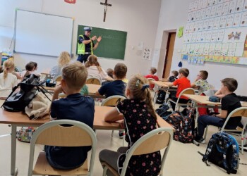 W dniu 19.09.2025r. odbyło się spotkanie naszych uczniów klas 1-3 z Policją. Podczas cyklu edukacyjnego policjanci przypomnieli dzieciom między innymi jakich zasad należy przestrzegać, aby bezpiecznie dotrzeć do szkoły oraz jak ważne są elementy odblaskowe dla pieszego.