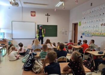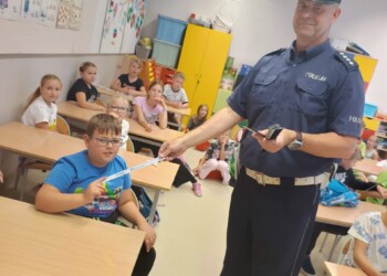 Mundurowi przypomnieli także o numerach alarmowych, z których należy korzystać w sytuacji zagrożenia oraz zasady bezpieczeństwa podczas jazdy na rowerze i hulajnodze elektrycznej. Dzieci czynnie uczestniczyły w spotkaniu, dzieliły się swoimi spostrzeżeniami i doświadczeniami oraz zadawały bardzo dużo pytań. Dzięki takim spotkaniom policjant będzie kojarzył się dzieciom, jako osoba, której nie należy się bać i do której zawsze i w każdej sytuacji można zwrócić się o pomoc.