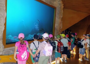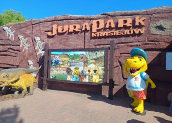 Zwiedzanie parku rozpoczęliśmy od „tunelu czasu”, gdzie przeniesiono nas w czasie i przedstawiono historię powstania planety Ziemia i życia na niej. Podczas pokonywania spacerem długiej trasy, mieliśmy okazję podziwiać różne dinozaury, które żyły w poszczególnych okresach geologicznych. Odwiedziliśmy również oceanarium, gdzie dzięki specjalnym okularom mieliśmy okazję podziwiać prehistoryczne stworzenia morskie. Odwiedziliśmy również pawilon, w którym pod szklaną podłogą oglądaliśmy efekty pracy studentów archeologii Uniwersytetu Opolskiego- odkryte na tym terenie kości dinozaurów. Wiele emocji dostarczył nam również seans w kinie 5D. Niezaprzeczalnie jednak największą atrakcją był przystanek na placu zabaw. Na koniec zjedliśmy pyszne lody i zakupiliśmy pamiątki oraz wykonaliśmy klasowe zdjęcia z dinozaurem, po czym wsiedliśmy do autokaru.