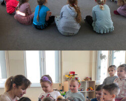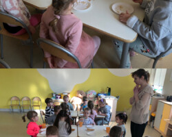 Dnia 2.03.2023 grupę Żabek odwiedziła Pani Magdalena Mazurek – mama Lidzi, która przybliżyła nam prace Logopedy. Było smacznie, radośnie, warsztatowo. Uśmiechy na twarzach dzieci pokazują, że ćwiczenia aparatu mowy oraz ćwiczenia oddechowe mogą sprawić wiele radości. Dziękujemy Pani Magdalenie za odwiedziny.