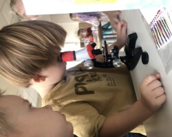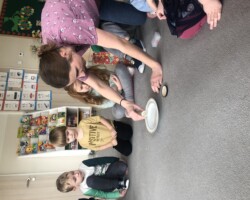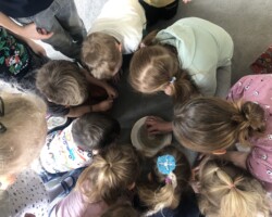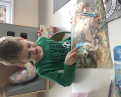 Dnia 15.03 grupę „Żabek” odwiedziła pani Lucyna Gajda – mama Piotrusia, która przybliżyła nam prace diagnosty laboratoryjnego. Dzieci dowiedziały się dlaczego ważne jest mycie rąk, czym żywią się bakterie, jak wyglądają bakterie. Dzieci tworzyły wędrującą tęcze oraz sprawdziły czy dobrze myją ręce, poprzez wyhodowanie bakterii z dłoni za pomocą specjalnych pożywek dla bakterii. Z wyhodowanych bakterii wynika, że „Żabki” myją dokładnie dłonie. Dziękujemy za odwiedziny i przeprowadzenie ciekawych zajęć Pani Lucynie i już oczekujemy kolejnego gościa.