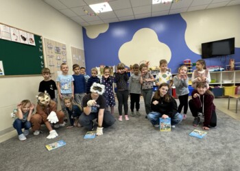 Dnia 7.11.2024 uczniowie z kółka czytelniczego „Zaczytani” pod opieką p. Alicji Kołodziejczyk odwiedzili dzieci z grupy „Motylki”, aby przybliżyć historię kota Cukierka. Dzieci z uwagą i ciekawością słuchały opowiadania czytanego przez „Zaczytanych”. Już nie możemy doczekać się kolejnych spotkań i poznawania dalszych przygód kotka Cukierka.