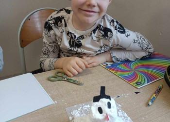Na zajęciach sensorycznych przygotowanych przez wychowawczynię, uczniowie klasy 1 b mimo braku śniegu za oknem ulepiły swoje bałwanki. Sypki, sztuczny śnieg stworzony z mąki oraz pianki do golenia okazał się wspaniałą alternatywą dla naturalnego, białego puchu. Dzieci miały mnóstwo zabawy podczas pracy plastycznej, a końcowe prace wniosły zimową atmosferę do klasowej sali.