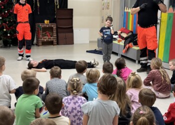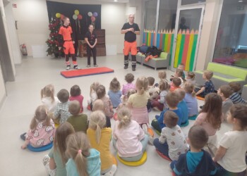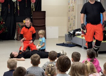 Dnia 09.01.2025 gościliśmy w naszym przedszkolu wyjątkowych gości – ratowników medycznych, którzy przeprowadzili niezwykle pouczające warsztaty z zakresu udzielania pierwszej pomocy. Dzieci miały okazję poznać podstawowe zasady postępowania w sytuacjach kryzysowych oraz nauczyć się, jak reagować w przypadku zagrożenia zdrowia lub życia. Ratownicy medyczni krok po kroku wyjaśnili, jak pomóc osobie, która straciła przytomność, jak prawidłowo wezwać pomoc medyczną, a także co zrobić, gdy ktoś się skaleczy lub złamie rękę. Zajęcia były bardzo interaktywne – przedszkolaki miały okazję aktywnie uczestniczyć w ćwiczeniach, np. symulując resuscytację krążeniowo-oddechową na fantomach, czy udzielając pomocy osobie, która „potrzebowała” opatrunku na złamaną rękę. Dzięki tym warsztatom dzieci nie tylko zdobyły cenną wiedzę, ale także zrozumiały, jak ważne jest szybkie i odpowiedzialne działanie w sytuacjach, które mogą zagrażać zdrowiu i życiu. To świetna lekcja, która z pewnością zostanie z nimi na długo! Dziękujemy naszym gościom za poświęcony czas i cenne wskazówki. Jesteśmy pewni, że przedszkolaki zyskają większą pewność siebie, wiedząc, jak reagować w trudnych sytuacjach.