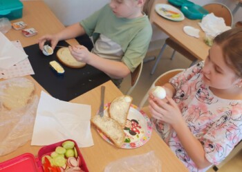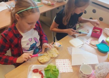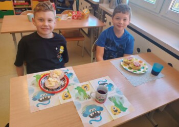 „Śniadanie Daje Moc”- celem akcji którą zorganizowały wychowawczynie klas 1-3 było promowanie zasad zdrowego odżywiania oraz zwiększanie świadomości uczniów na temat roli śniadania. Uczniowie klas I-III przygotowali zdrowe śniadanie a panie przygotowały pyszną herbatkę. Tego dnia przeprowadzono również pogadanki na temat roli śniadania, jako najważniejszego posiłku w ciągu dnia. Dobrze zbilansowany posiłek daje dzieciom siłę i energię do nauki i zabawy, przyczynia się do lepszej koncentracji na wykonywanych zadaniach. Wspólne przygotowanie i spożywanie śniadania sprawiło dzieciom wiele przyjemności i radości.