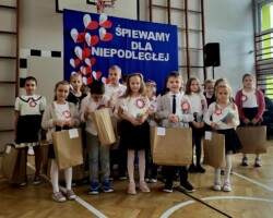 miejsce 2 – Maksymilian Migdał kl. 1b, Antonina Wolańska kl. 2a, Maja Suszwedyk kl. 3b